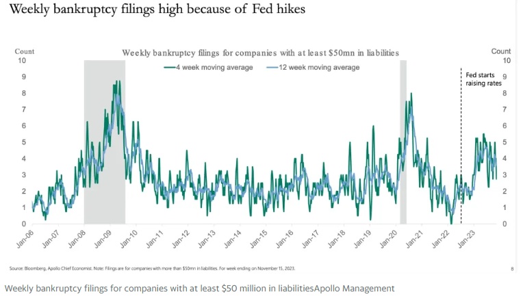 Sløk写道,“违约率的持续上升不仅仅是一种‘正常化’。这是美联储加息的直接后果。美联储正试图让经济放缓,”
