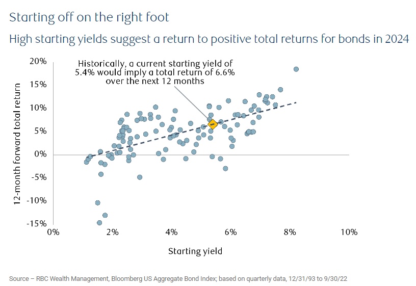 明年美联储开启降息很可能将提振股票价格,并降低债券收益率。但这很大程度上取决于他们为什么降息。如果发生经济衰退,长期限美债收益率将愈发受市场欢迎。长期限的美债之所以能够为投资者提供稳定回报,主要原因在于它们长期提供固定收益率。因此,当收益率较高时,所赚取的收益通常足以抵消大部分价格波动。