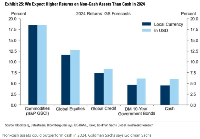 高盛表示,预计到2024年,利率、信贷、股票和大宗商品的回报率将超过现金。