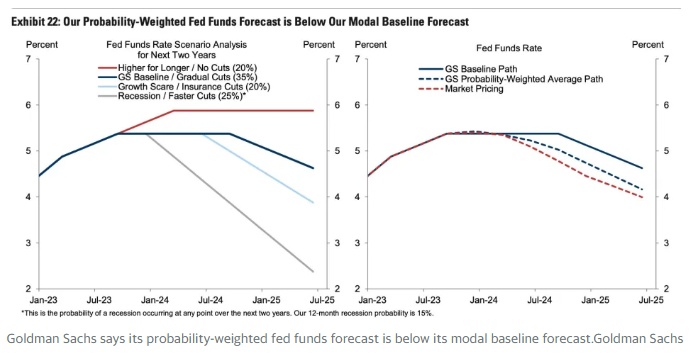 高盛认为,到2024年,通货膨胀率应该会继续下降,实际家庭收入增长应该会增长,制造业活动将会反弹,以美联储为首的央行应该会越来越愿意降息。