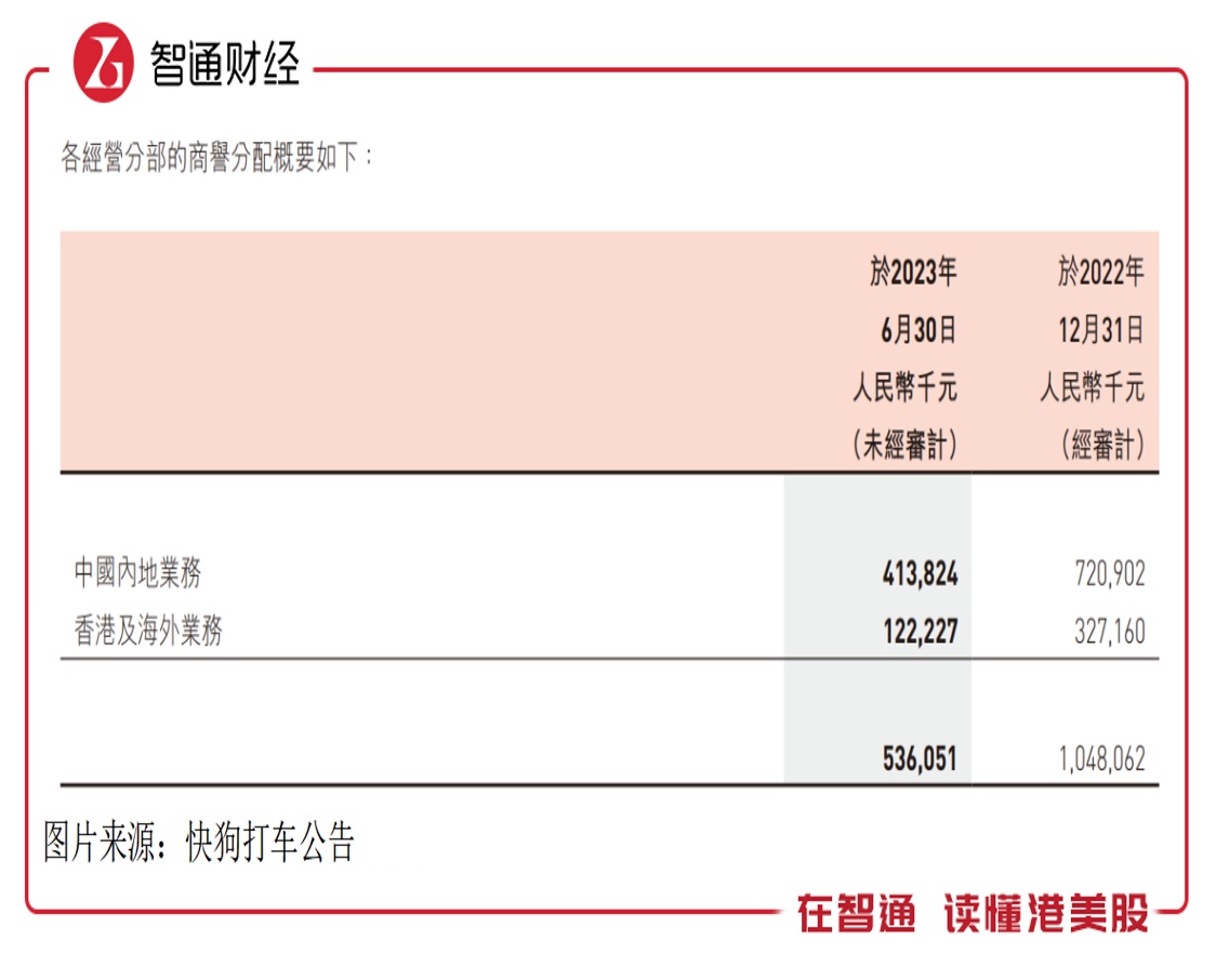 智通财经APP了解到,2017年时快狗打车收购GoGoVan,产生了超过10亿元的商誉,2022年之前并未发生减值,然而今年却发生突变。据披露,GoGoVan主要在中国内地、香港及其他亚洲国家从事提供物流服务及平台服务,按地区分配商誉,中国内地和海外分别占比68.7%及31.3%。