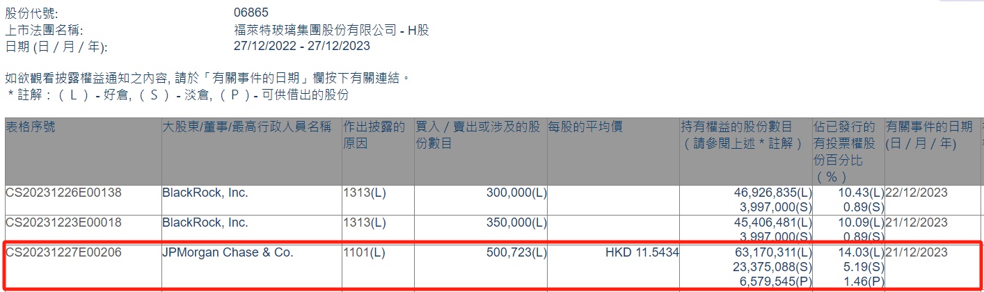 智通财经APP获悉,香港联交所最新资料显示,12月21日,小摩增持福莱特玻璃(06865)50.0723万股,每股作价11.5434港元,总金额约为578.00万港元。增持后最新持股数目约为6317.03万股,最新持股比例为14.03%。