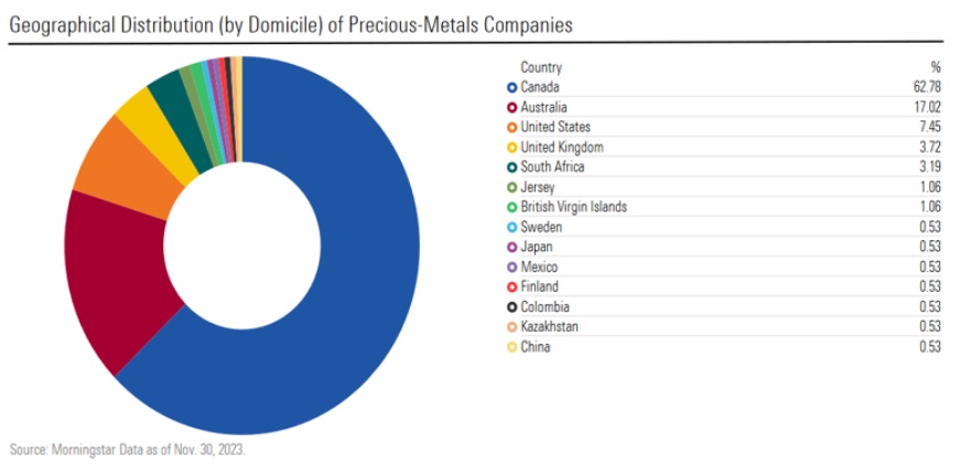 许多投资者可能期望矿山位于发展中市场。但贵金属公司主要集中在加拿大和澳大利亚,因为这两个国家的原材料供应充足,而且勘探和生产历史悠久。