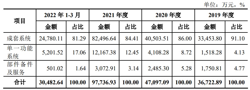 报告期内,公司主营业务收入按粉粒体气力输送技术为核心的成套系统、单一功能系统、部件备件及服务三类划分情况如下: