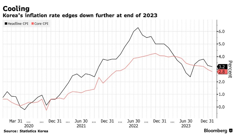 韩国央行行长李昌镛(RheeChang-yong)上周表示,虽然价格压力预计将在2024年有所缓解,但现在放松对通胀威胁的警惕还为时过早。他还补充说,抗击通胀的最后一公里可能比之前更艰难。