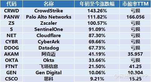 此外,Palo Alto Networks(PANW.US) 年内涨近112%,Zscaler(ZS.US)涨超100%,SentinelOne(S.US)年内涨超91%。不过,尽管该板块大幅走高,但多只个股仍未实现盈利。