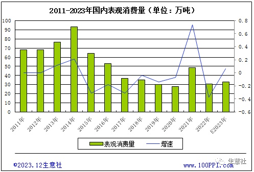 据海关统计,除了2021年因为新能源的快速发展使得镍豆生产硫酸镍的产能快速扩张,导致镍表观消费量大幅增加外,2017-2023年镍表观消费量都处于一个较低水平。