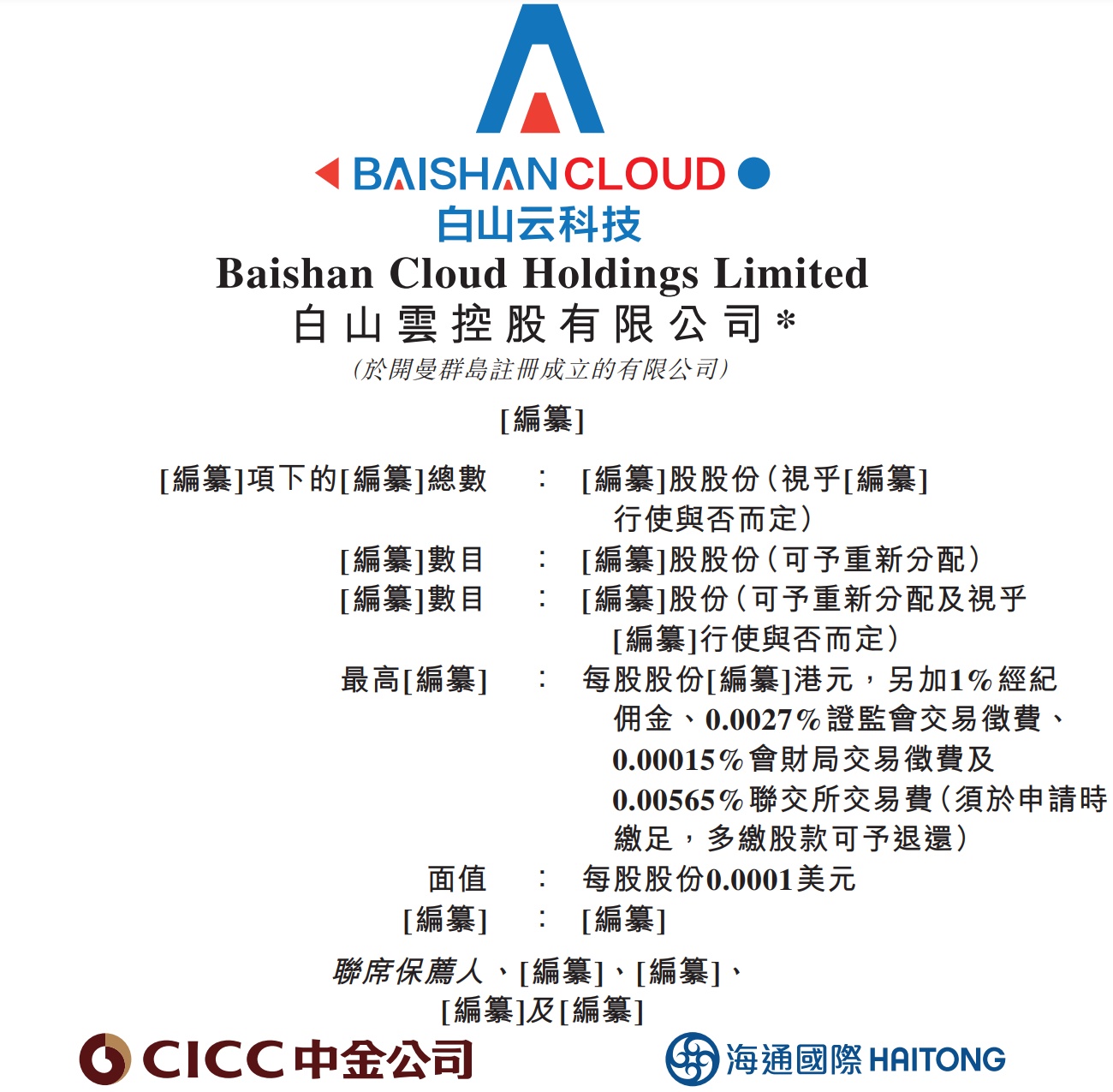 智通财经APP获悉,据港交所2023年12月29日披露,白山云控股有限公司(简称“白山云”)向港交所主板递交上市申请,中金公司、海通国际为其联席保荐人。