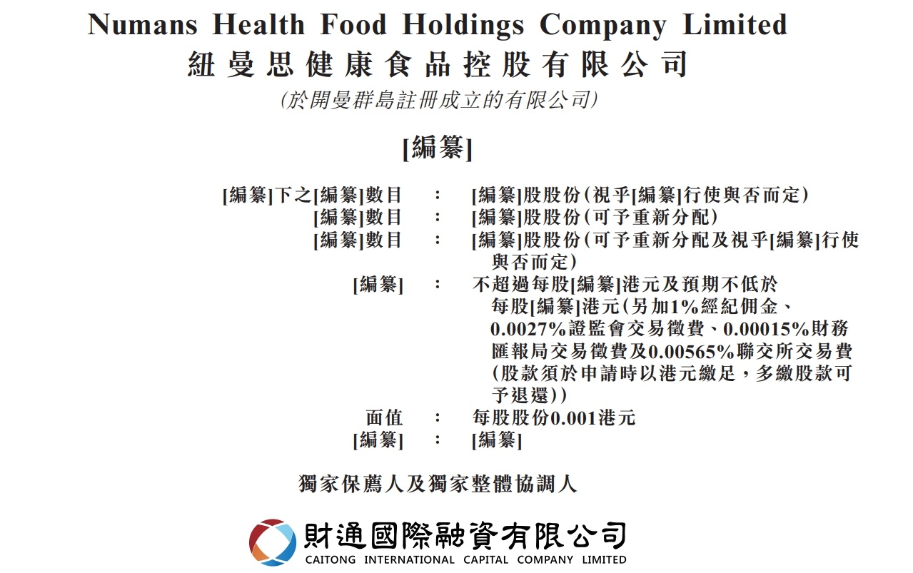 智通财经APP获悉,据港交所12月29日披露,纽曼思健康食品控股有限公司递表港交所主板,财通国际融资有限公司为其独家保荐人。