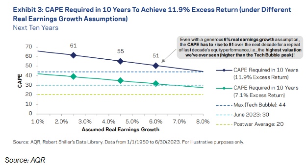 他写道:“即使在最极端的实际收益情况下,股市的估值也需要达到前所未有的高度。”