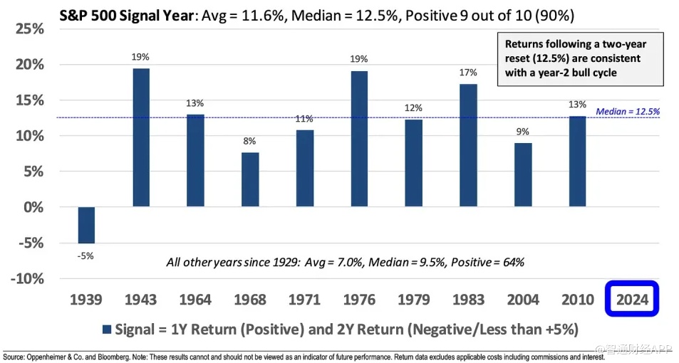 Wald还表示:“在接下来的一年里,标普500指数的中位数涨幅为12.5%,股市走高的概率为90%。这些回报预期与为期两年的牛市周期一致。”