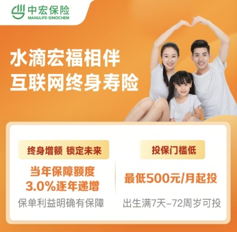 “水滴宏福相伴”是水滴保与中宏人寿保险公司倾力打造的互联网终身寿险产品,具备稳定性与成长性的双重特点。具体来看,该产品有以下几点优势: