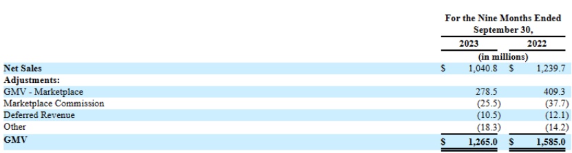 财报显示,截至2023年9月30日的9个月内,新蛋GMV为12.65亿美元,同比降低20.2%;公司当期销售额也因此跌至10.41亿美元,同比降低16%。