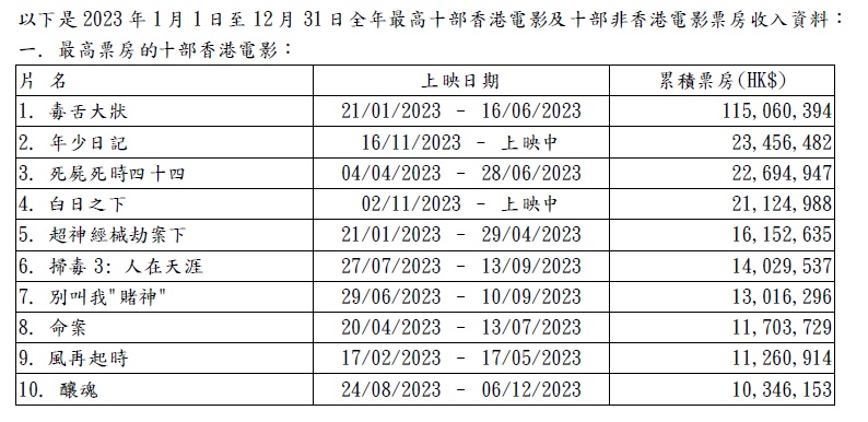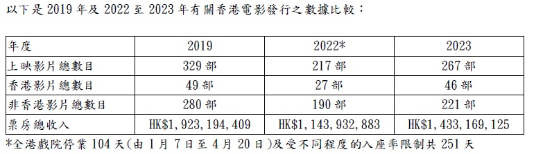 智通财经APP获悉,1月2日,香港影业协会及香港戏院商会属下的香港票房有限公司公布数据显示,2023年香港中西票房全年总收入为1433169125港元,跟2011年(1392170518港元)收入相若。与疫前的2019年相比,下跌25.48%。该公司估计,票房减少或因疫情后市民外游增加、疫情期间拍摄停滞以致戏码选择不多、市民消费模式转变等等因素影响。