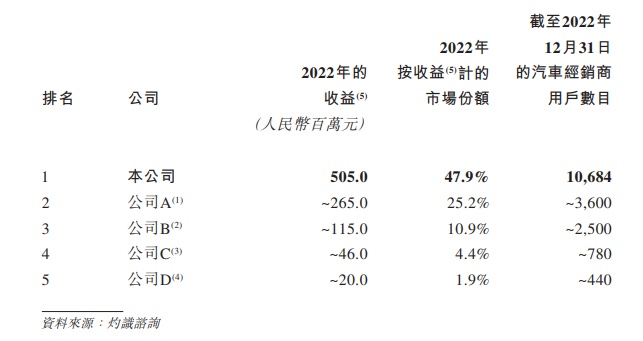 从市场格局来看,目前仅有少量市场参与者进入该汽车经销商运营管理服务领域,但这些市场参与者仍处于分析客户需求及服务范围的阶段,并且尚未实际提供该等服务或产生客观收入,市场渗透率不足0.5%,暂未形成稳定的竞争格局。在这样的行业背景下,先发优势尤为重要,谁能快速铺开市场,便能随行业的成长持续壮大。