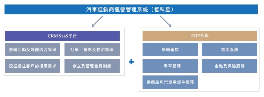 “智科星”涵盖 CRM SaaS以及ERP系统,可提供包括营销、销售、售后维修及客户关系,以及后台运营,包括人力资源、财税及存货管理在内的系统化、标准化、流程化的管理服务,通过生成可视化经营业绩,并提供自动化业绩分析,能帮助经销商改善运营效率、减少管理成本。