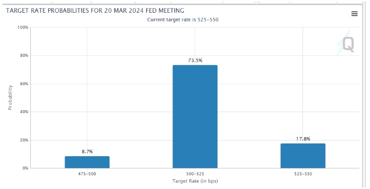 市场喜欢这个观点——但可能太过了——预计2024年将有四到五次降息,第一次将在3月份。债券收益率暴跌,股市飙升,美元处于亏损状态。投资者倾向于先开枪后思考,而且可能做得太过了。