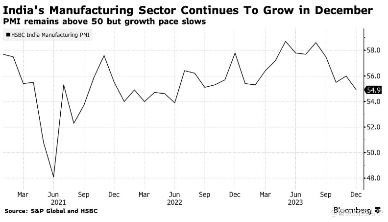 智通财经APP获悉,印度12月制造业活动放缓,但由于新订单和商业信心持续增长,其表现仍优于亚洲同行。汇丰银行周三公布,12月份印度制造业采购经理人指数(PMI)为54.9,低于11月的56。由于工厂订单和产出的增长速度失去动力,12月份的数据是18个月来最低的。该指数高于50表明经济处于扩张状态。