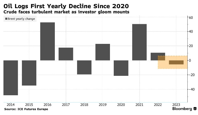 目前来看,投机者在做出2024年果断看多石油的决定前,还需要一些说服力。彭博指数显示,大宗商品对冲基金去年的回报率下滑至2019年以来最低点,而原材料价格则出现了五年来的首次下跌。值得注意的是,石油交易商皮埃尔·安杜兰(Pierre Andurand)的同名对冲基金正走向有史以来最严重的亏损。