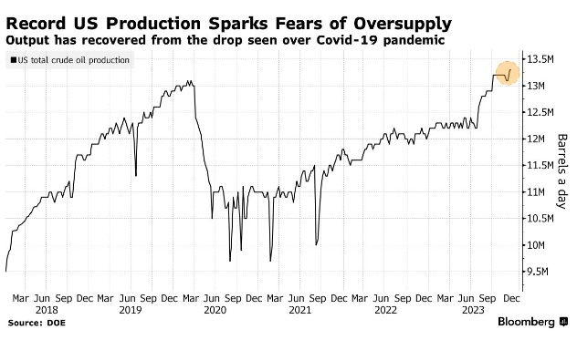 在美国,由于从西得克萨斯州的二叠纪盆地到北达科他州的巴肯页岩地区的钻探商都提高了原油产量,并超出了分析师的预期,上个月的原油周产量达到了创纪录的每天1330万桶。根据美国能源信息署的数据,2024年的产量预计将创下历史新高。巴西和圭亚那也将大幅增加原油供应,推动美洲新原油浪潮。