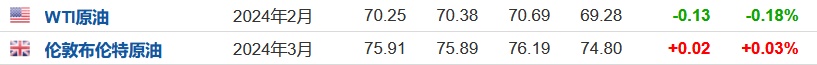 3.截至发稿,WTI原油跌0.18%,报70.25美元/桶。布伦特原油涨0.03%,报75.91美元/桶。