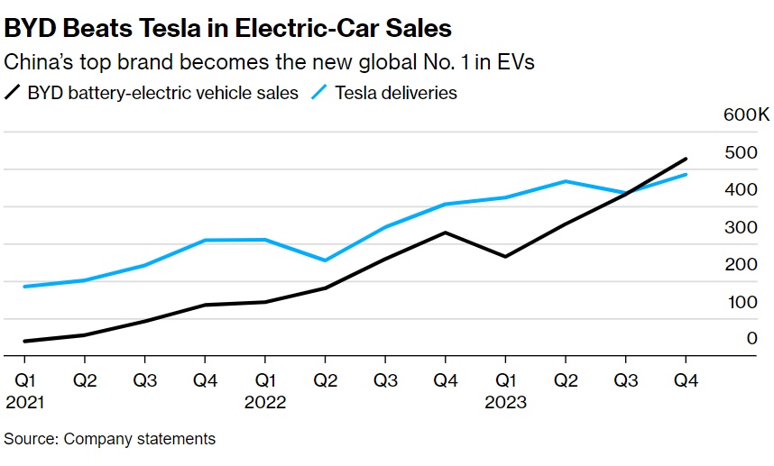 比亚迪电动汽车销量超过特斯拉——中国顶级品牌成为新的全球电动汽车 No. 1
