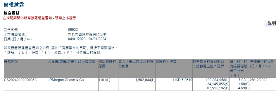 智通财经APP获悉,香港联交所最新资料显示,12月28日,小摩增持九毛九(09922)150.2044万股,每股作价6.0619港元,总金额约为910.52万港元。增持后最新持股数目约为1.01亿股,最新持股比例为7.02%。