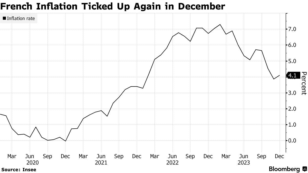 数据显示,法国12月能源价格上涨5.6%,高于上一月3.1%的涨幅。服务业通胀加速可能是政策制定者更关心的问题,因为它能更好地反映核心价格压力。法国12月服务业通胀小幅上升至3.1%,主要原因是交通部门价格的增长。