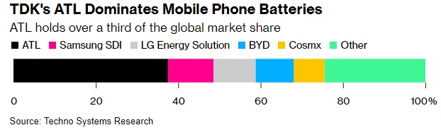 TDK的ATL主导手机电池,拥有超过三分之一的全球市场份额