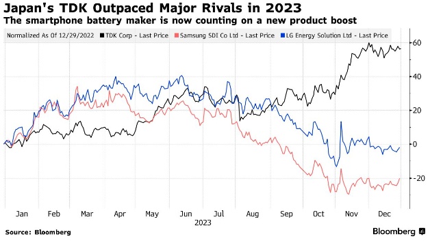 对TDK来说,高端电池为实现这种被视为商品化的产品的可持续增长提供了一条途径。电池业务占TDK年收入的一半以上,智能手机制造商占其最大客户的大部分。但TDK在最近的财报电话会议上表示,智能手机电池业务的增长一直持平,这引发了人们对客户微薄利润率导致增长放缓的担忧。