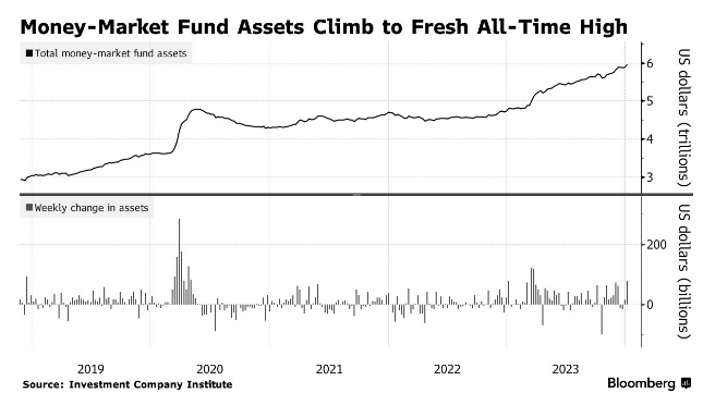 智通财经APP获悉,货币市场基金资产升至历史新高,主要原因是年底投资者寻求保护现金流入政府部门。根据美国投资公司协会的数据,截至1月3日的一周内,约有786亿美元流入美国货币市场基金。总资产从前一周的5.89万亿美元增至5.965万亿美元。