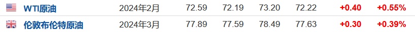 3.截至发稿,WTI原油涨0.55%,报72.59美元/桶。布伦特原油涨0.39%,报77.89美元/桶。