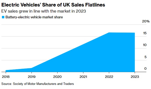 智通财经APP获悉,电动车在英国的市场份额增长停滞不前,政策约束下的汽车制造商们不得不寻求减税。
