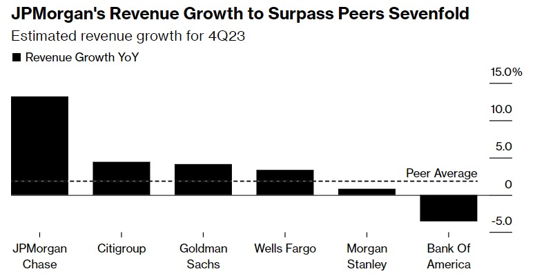 智通财经获悉,摩根大通(JPM.US)将于1月12日(周五)美股盘前公布2023年第四季度与全年财务业绩。市场预计,摩根大通在公布第四季度业绩时,将在收入增加的情况下实现盈利同比增长。根据Zacks共识预期,该公司第四季度每股收益预计为3.64美元,同比增长2%。营收预计为390.3亿美元,较上年同期增长13%。