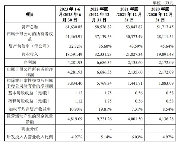 财务方面,于2020年、2021年、2022年及2023年1-6月,博纳精密实现营业收入分别约为1.91亿元、2.18亿元、3.23亿元及1.86亿元。同期,该公司实现净利润分别为2172.09万元、2135.60万元、6686.35万元及4281.93万元。