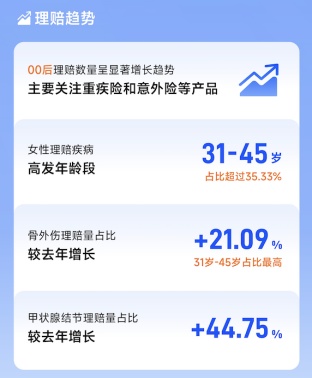 骨外伤理赔量占比增长21.09%,甲状腺结节理赔量占比增长4成