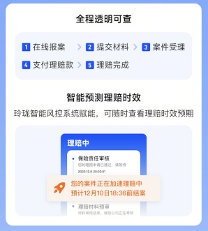 “帮帮赔”进一步将理赔步骤流程化、简约化拆解,全流程透明可查,像类似于查询物流进展一样,用户可以通过水滴保微信小程序随时查询理赔动态。在玲珑智能风控系统赋能下,材料齐全且符合加速理赔规则的案件,能够即时为用户出具理赔时效预期,让用户心里更有底,更踏实。