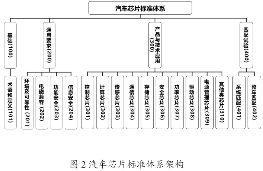 产品与技术应用类标准规范在汽车上应用的各类芯片所应符合的技术要求及试验方法。此类标准涵盖控制芯片、计算芯片、传感芯片、通信芯片、存储芯片、安全芯片、功率芯片、驱动芯片、电源管理芯片和其他类芯片10个类别。
