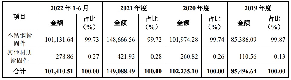 招股书披露, 腾达科技主营业务始终为螺栓、螺母、螺杆、垫圈等紧固件产品的研发、生产与销售业务,是中国不锈钢紧固件行业生产规模领先的企业之一。公司生产的不锈钢紧固件主要目标客户群体为国内外知名紧固件及五金制品贸易商、工程承包和配套商,以及核电、轨道交通等行业终端客户。