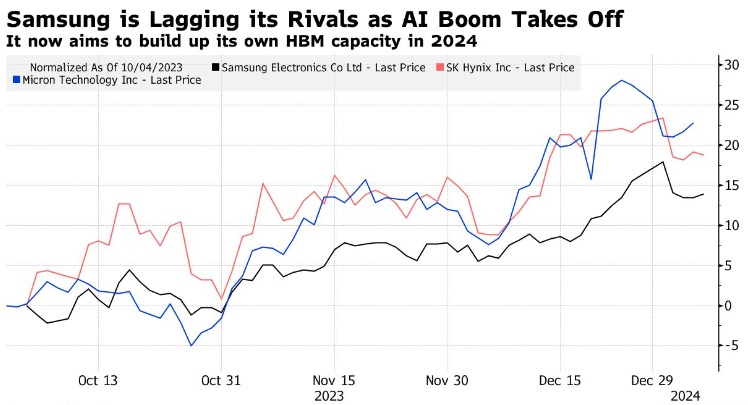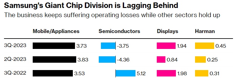三星在10月份预测,在人工智能开发热潮的推动下,长期低迷的1600亿美元内存市场将在2024年逐步反弹。高管们当时表示,价格应该会在2023年下半年左右开始走出低谷。该公司将于1月31日发布一份完整的收益报告,其中包括各部门的详细情况。