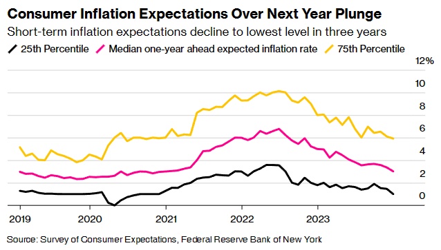 智通财经APP获悉,纽约联储周一公布的一项调查显示,美国消费者的短期通胀预期在去年12月降至2021年1月以来的最低水平。调查显示,美国消费者对未来一年的通胀预期中值连续第三个月下降,从11月的3.4%降至3.0%;对未来三年和五年的通胀预期中值也分别降至2.6%和2.0%。