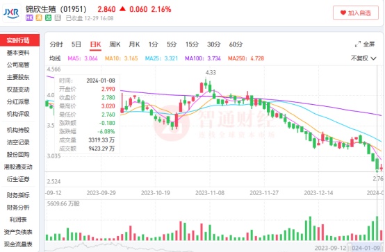 但并非该赛道内的所有企业都享受到了来自行业的红利。例如身为港股“辅助生殖第一股”的锦欣生殖(01951),其股价在整个2023年都处在波动下跌状态,整个2023年区间最高跌幅达到61.95%。另外,在去年11月7日盘中达到阶段性高点4.33港元后,锦欣生殖的股价便在一路下跌中完成了跨年,并在2024年1月8日盘中跌至最低2.78港元,区间最高跌幅达到35.79%,也创下了锦欣生殖上市以来的股价新低。