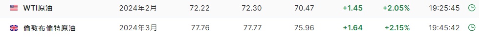 3. 截至发稿,WTI原油涨2.05%,报72.22美元/桶。布伦特原油涨2.15%,报77.76美元/桶。