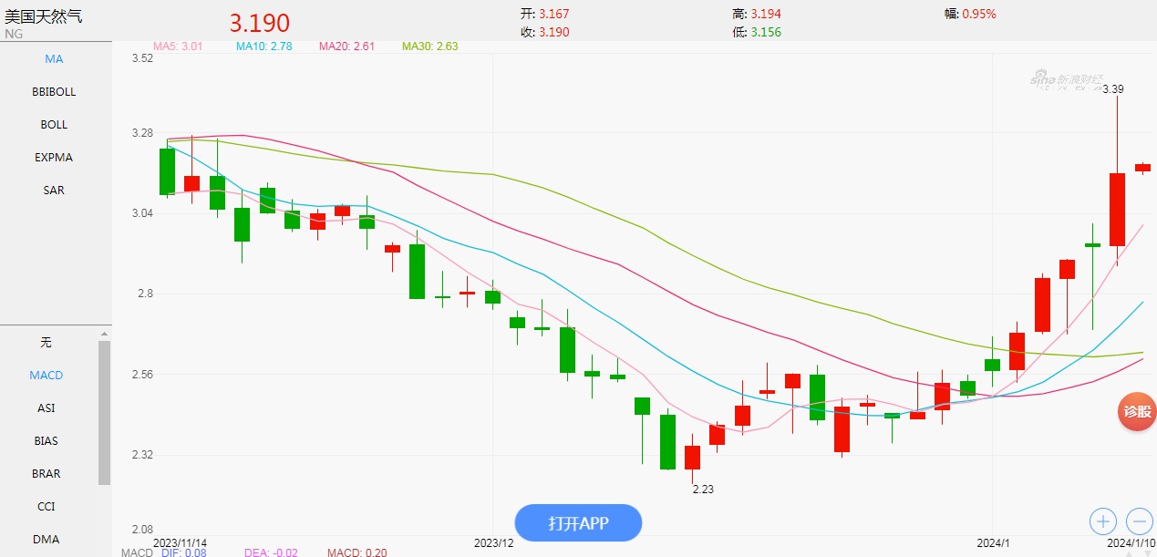 智通财经APP获悉,1月10日凌晨,美国天然气期货一度暴涨12%,最终收涨近7.05%,刷新去年11月15日以来收盘高位。消息面上,天气预报显示,美国大部分地区变得更加寒冷,美国南加州部分地区将出现冰冻天气。东海证券预计,冬季天然气价格将出现反弹,随着冬季到来天然气需求将迎来季节性回暖。