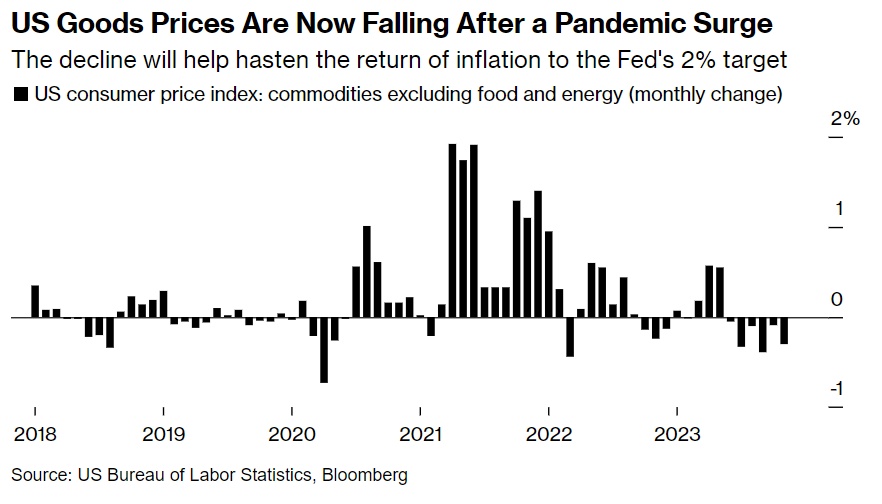 随着新冠疫情对美国经济的破坏趋势进一步消散,一些商品的价格甚至出现大幅下跌,美国的通货膨胀率将在2024年进一步下降,预计今年年底将接近美联储锚定的2%通胀目标,周四公布的CPI数据可能预示即将到来的“反通胀趋势”。