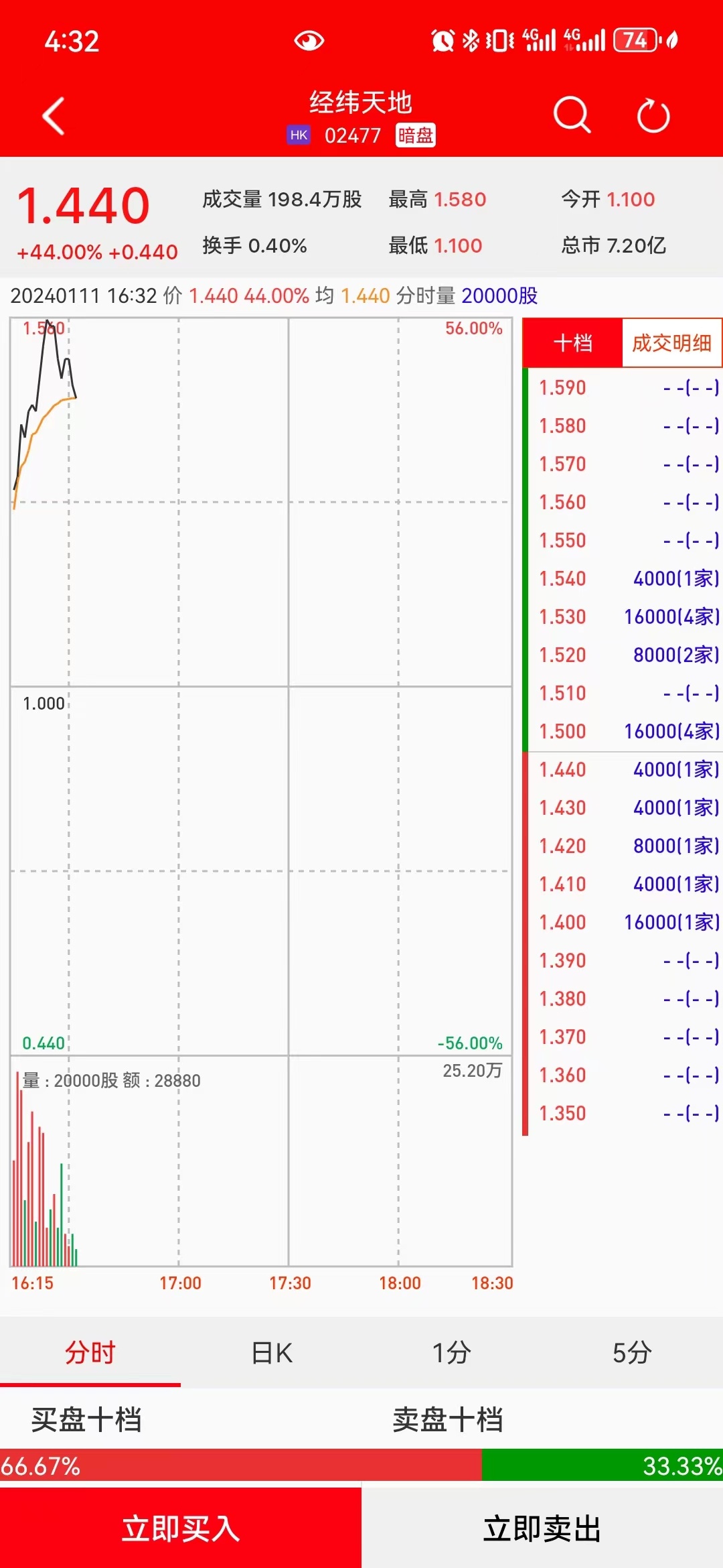 智通财经APP获悉,经纬天地(02477)将于1月12日(周五)在香港挂牌。截至发稿,利弗莫尔证券暗盘交易显示报价1.44港元,较招股价1.00港元上涨44%。每手4000股,不计手续费,每手赚1760港元。