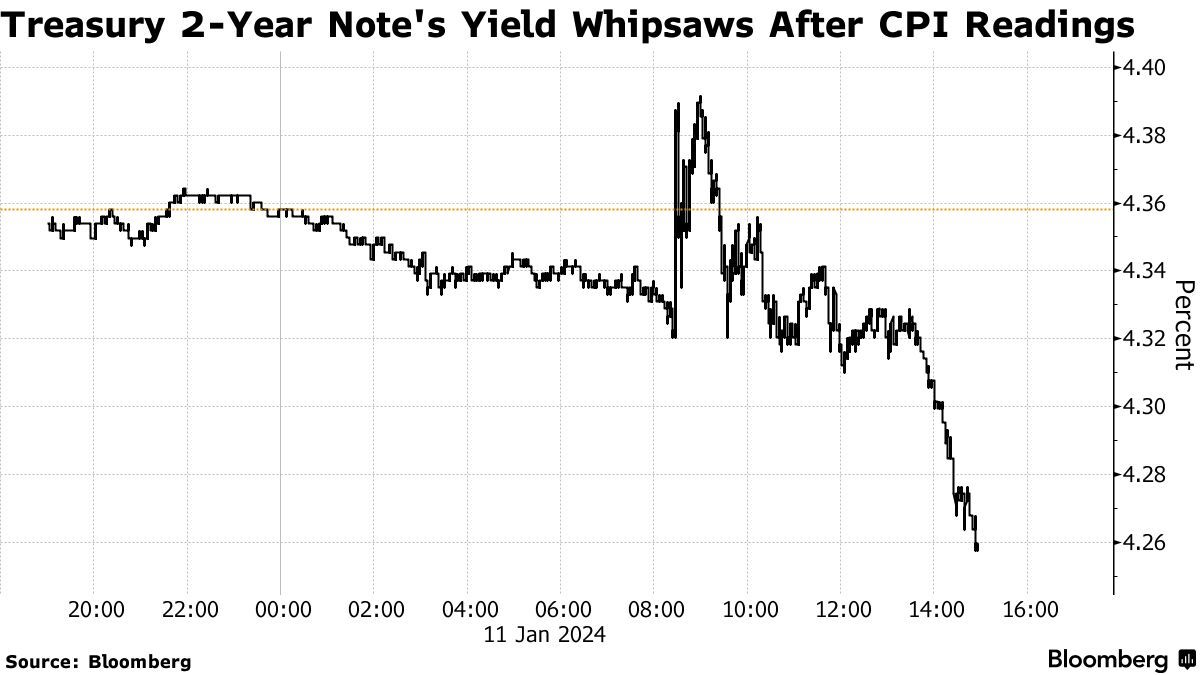 智通财经APP获悉,尽管美国12月CPI数据超出市场预期,但债券交易员不予理会,并对美联储从今年5月开始的更大规模降息进行了定价。在周四公布的美国12月CPI数据高于预期之后,美债收益率立即飙升,涨势一直持续到几个小时后30年期美债拍卖结束。在午后交易中,预测美联储未来利率的掉期合约重新定价至较低水平。对美联储政策敏感的两年期美债收益率下跌了10个基点,至4.26%,创下今年以来的最低水平;十年期美债收益率则下跌约5个基点,至3.98%。