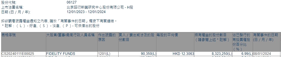 智通财经APP获悉,香港联交所最新资料显示,1月8日,FIDELITY FUNDS减持昭衍新药(06127)9.035万股,每股作价12.3063港元,总金额约为111.19万港元。减持后最新持股数目约为832.33万股,最新持股比例为6.99%。