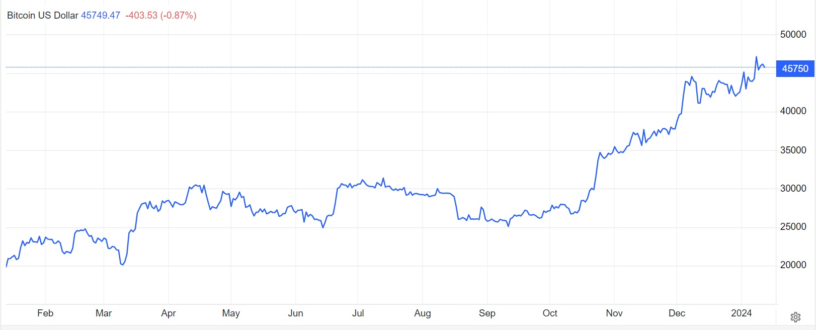 在2024年,6.9万美元这一比特币价格最高历史纪录很可能将被打破。一些业内高管坚称新一轮比特币牛市已经开始,主要基于两件重磅事件:分别是比特币“减半”,以及比特币交易所交易基金(比特币现货ETF)在美国首次获得批准。