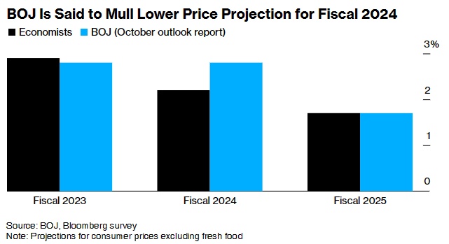 知情人士透露,由于油价走低,日本央行官员们可能会考虑将从4月份开始的下一财年不含生鲜食品的消费者价格预期从之前的2.8%下调至2.5%。对于从2024年4月开始的财年,他们仍然预计这一指标将略低于日本央行2%的目标。